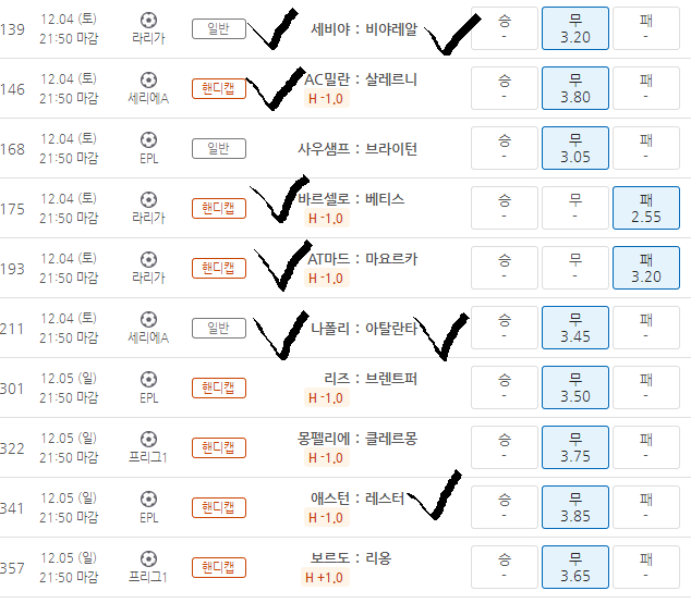다음주 유럽대항전 중요일정이 남은 팀들중에서 박빙스러운 경기들 무승부 또는 핸디캡으로 도전했습니당,,크흠,,